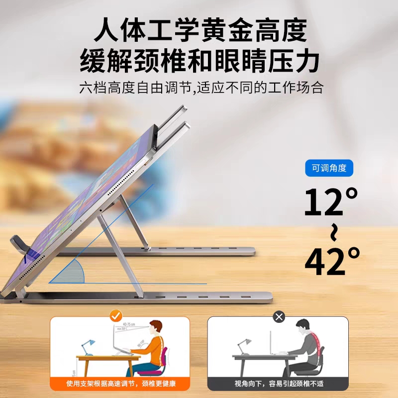 山泽笔记本电脑支架支撑散热托架可升降折叠便携铝合金桌面增高悬空散热器底座立式 架子办公游戏本平板电脑架