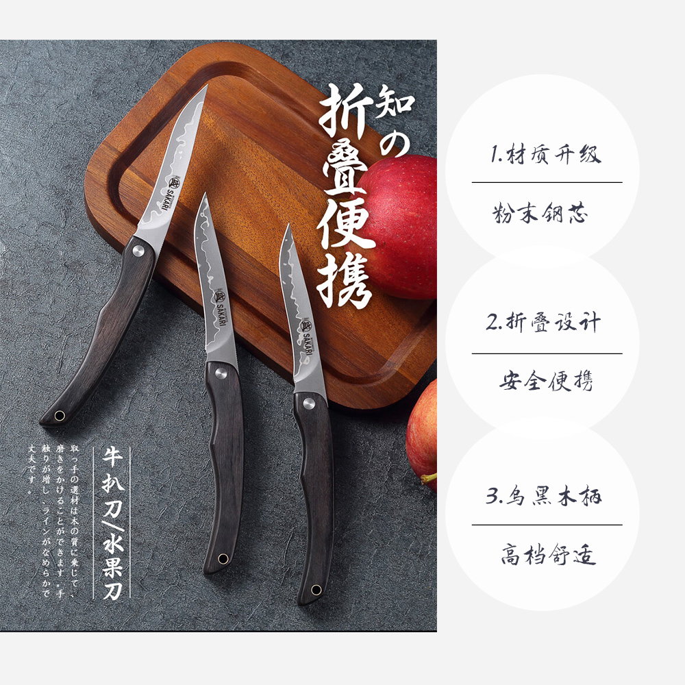 三本盛日本折叠水果刀家用小刀便携随身粉末钢户外露营具 自营