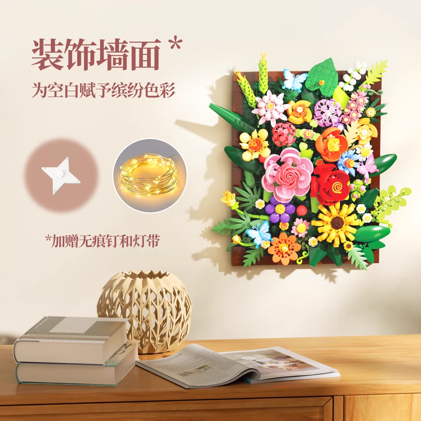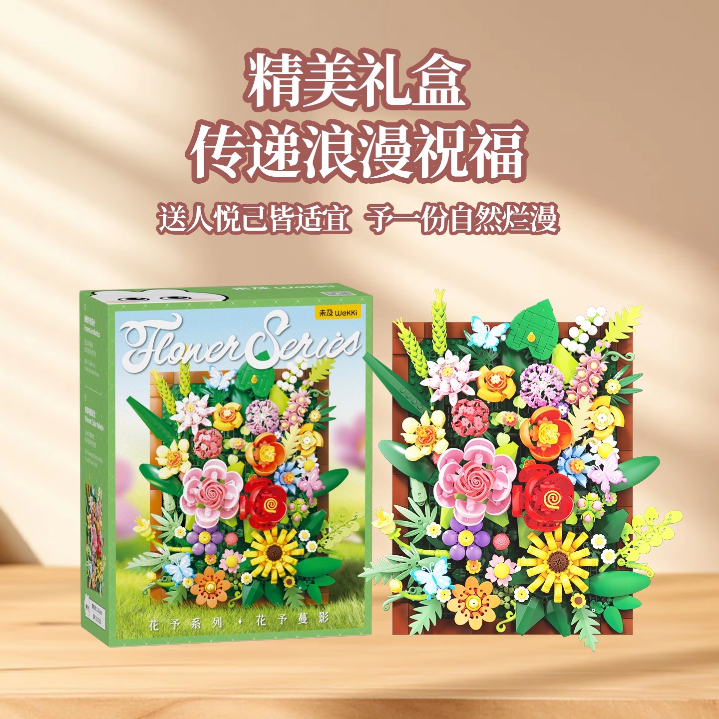 未及花予蔓影积木花装 玩具桌面摆件七夕情人节礼物 饰画益智拼装