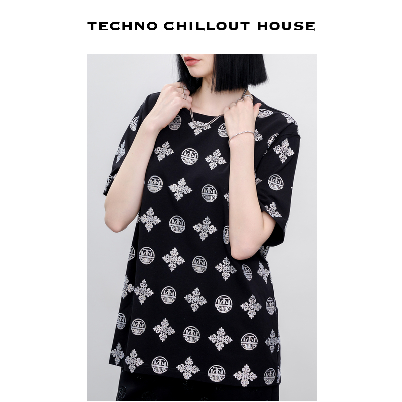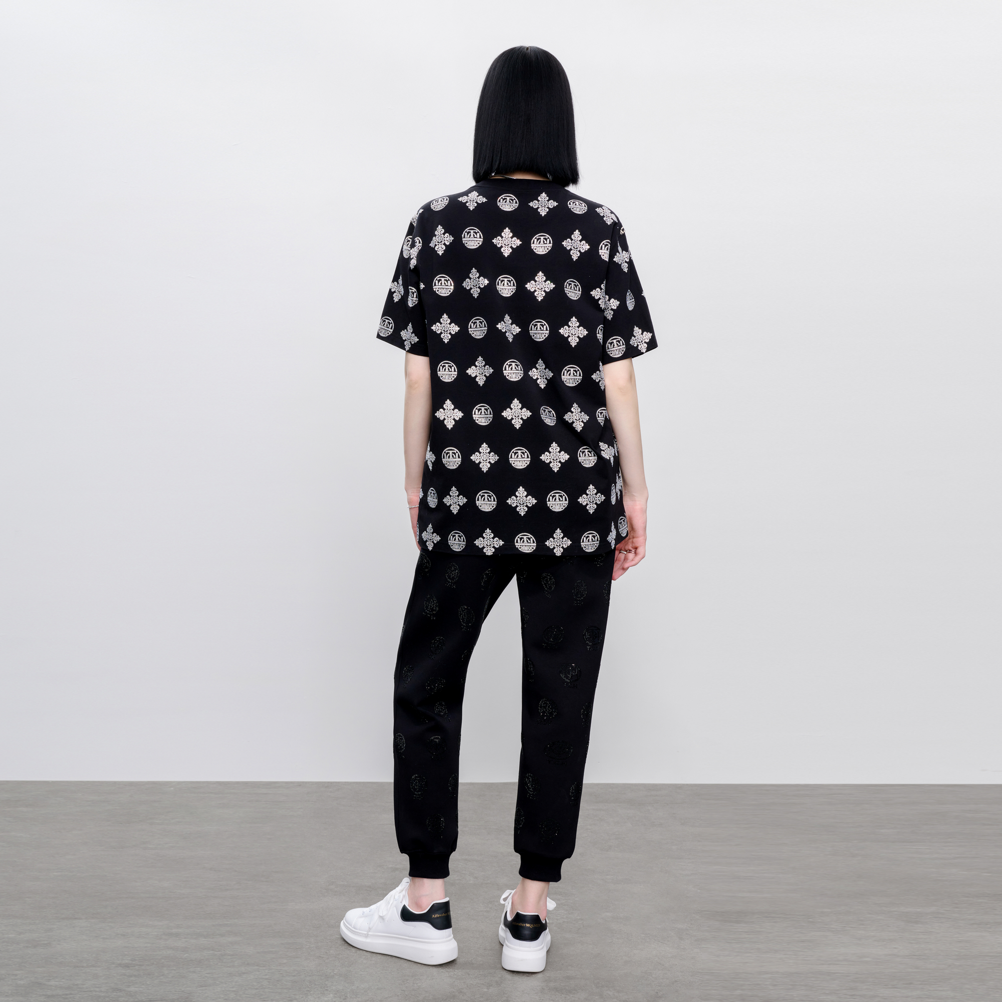 潮流烫钻LOGO满印时尚 新款 休闲百搭短袖 夏季 T恤男女同款 TCH美式