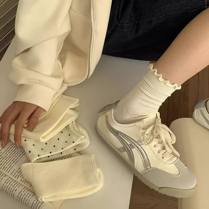 夏季 白色袜子女款 爆款 百搭2025新款 堆堆长袜月子袜 纯棉中筒袜秋季