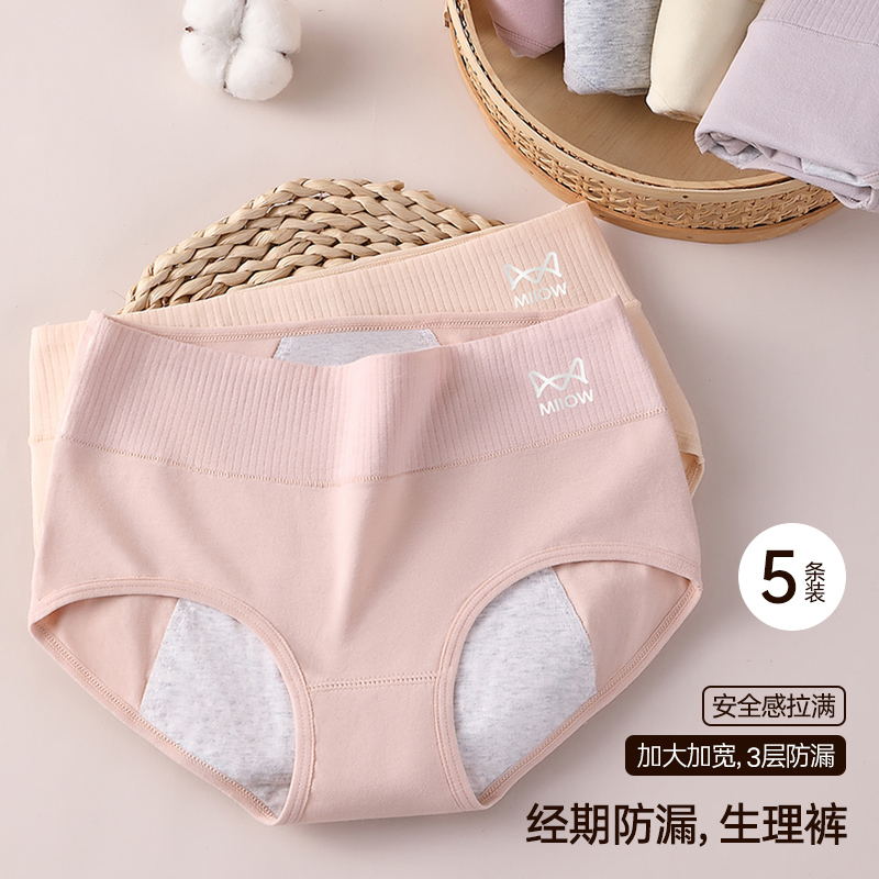 猫人生理内裤 女月经期加宽防漏纯棉抑菌裆透气安全卫生女士三角裤