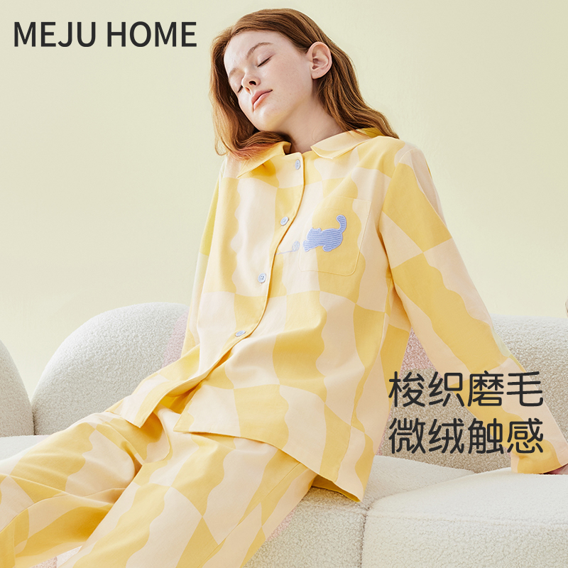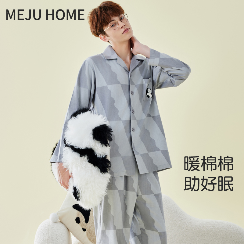 保暖家居服套装 长袖 小象居家男女款 纯棉磨毛情侣睡衣春秋2025新款