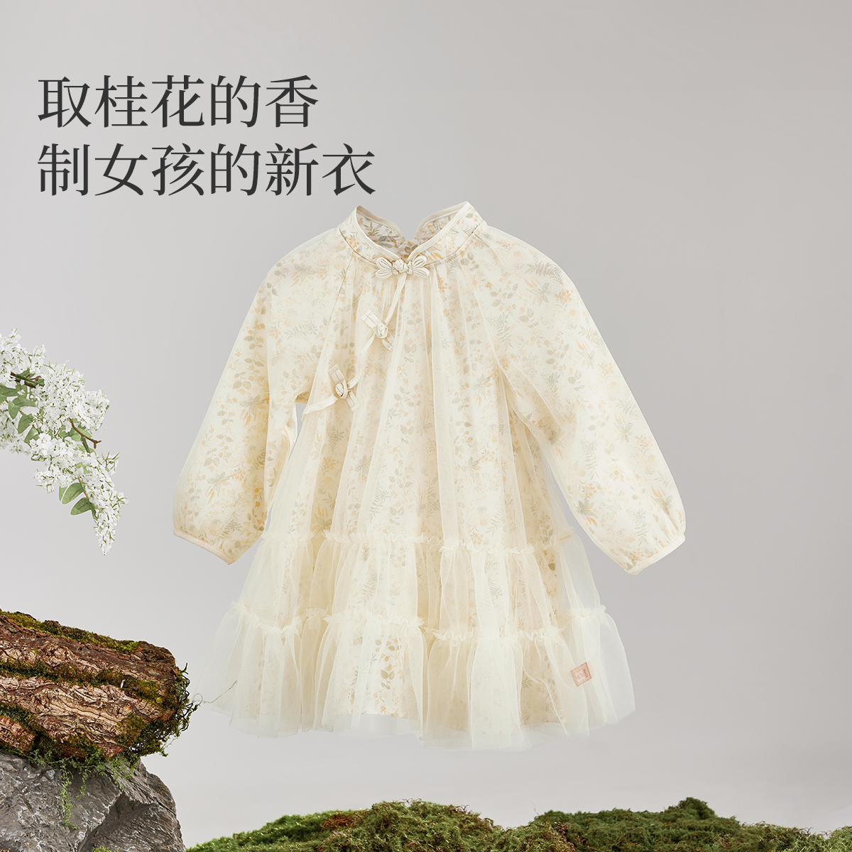 戴维贝拉女童国风连衣裙秋装 儿童洋气网纱裙宝宝汉服裙子