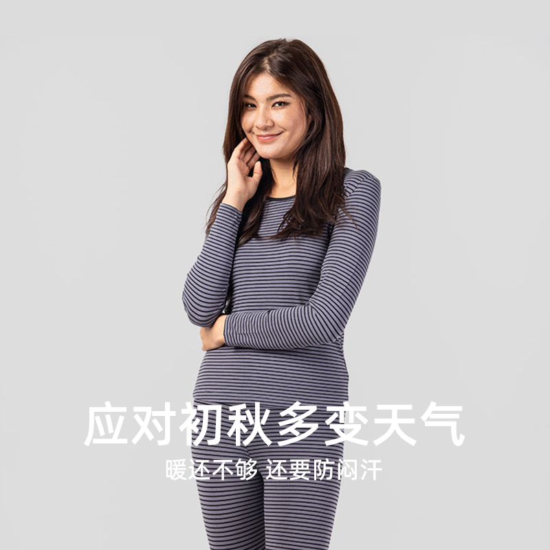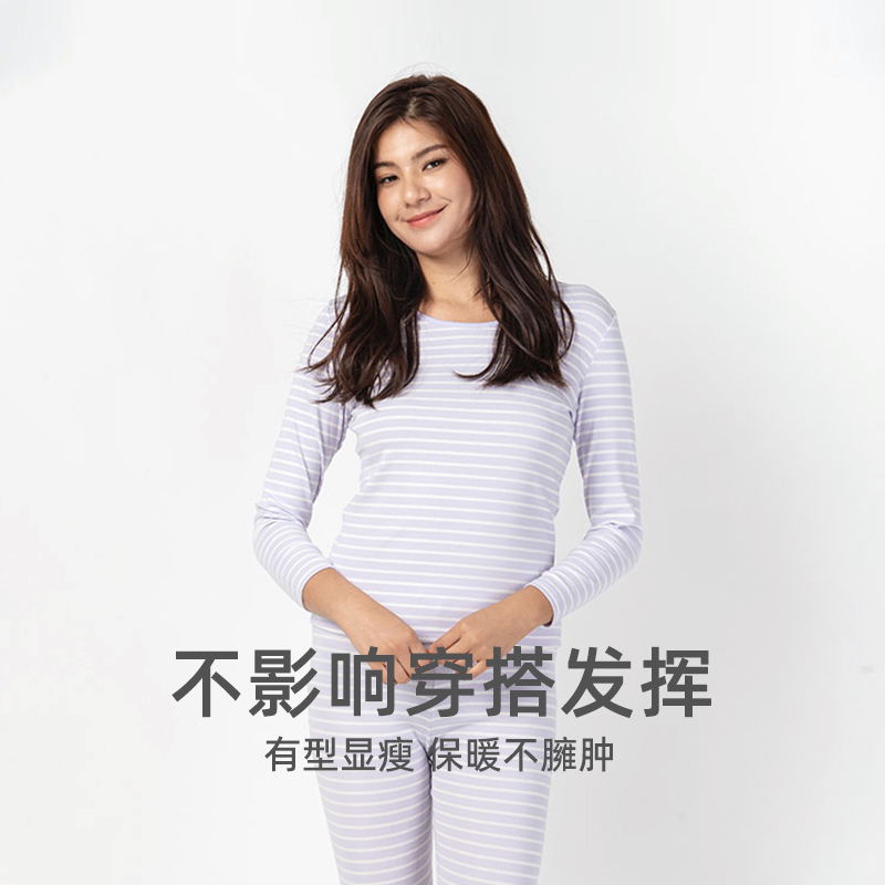 贴心女士加肥加大竹棉薄款 彩条圆领保暖内衣2629 打底秋衣秋冬新款
