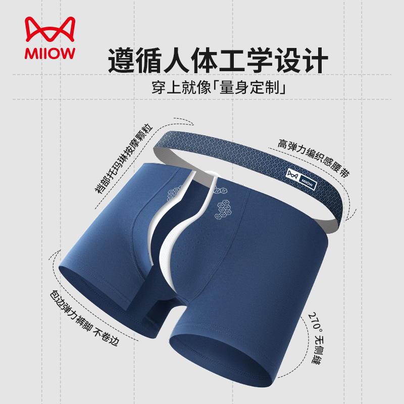 冰丝平角裤 纯棉男生2025新款 青少年大码 四角短裤 猫人男士 男款 内裤
