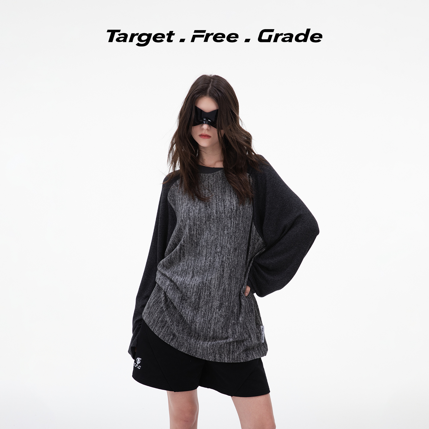 休闲黑灰拼接长袖 春秋新款 TFG男女士2025款 T恤男女 林少阳同款