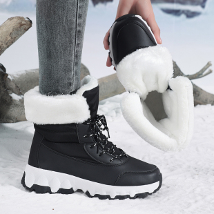 厚底防滑情侣加厚靴子 加绒加厚保暖防水高帮棉鞋 雪地靴女款 秋冬季