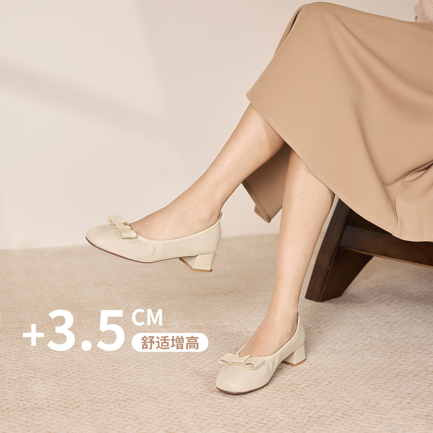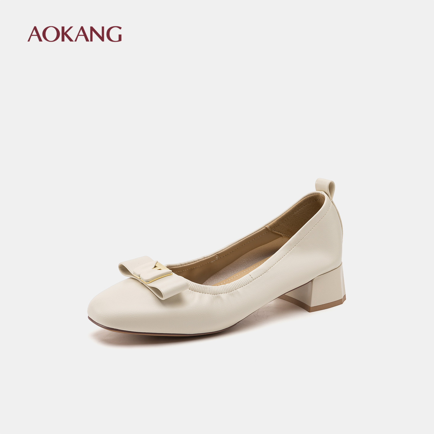 优雅杏头舒适真皮鞋 奥康 浅口单鞋 2025秋季 垫通勤约会中跟 女鞋