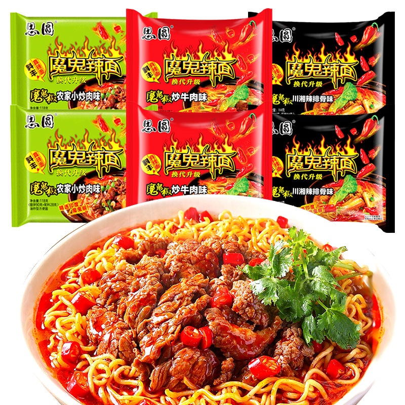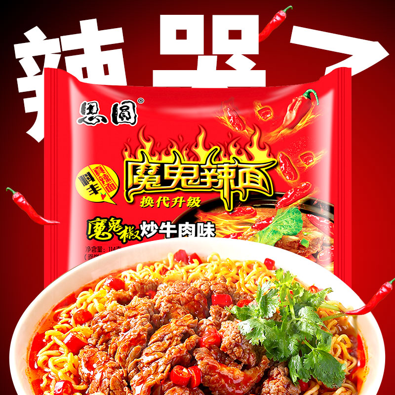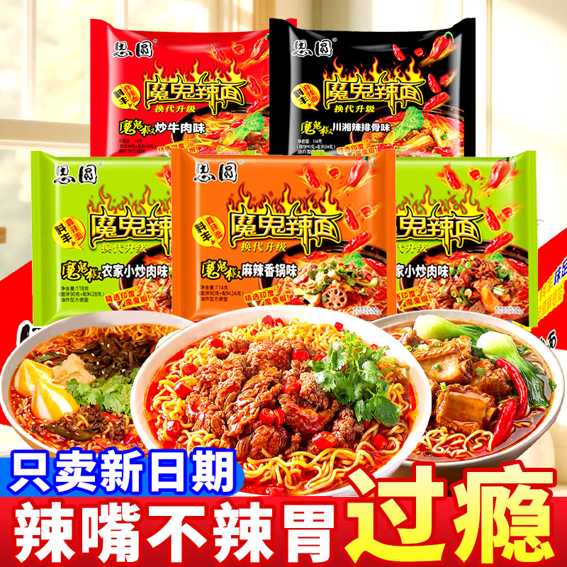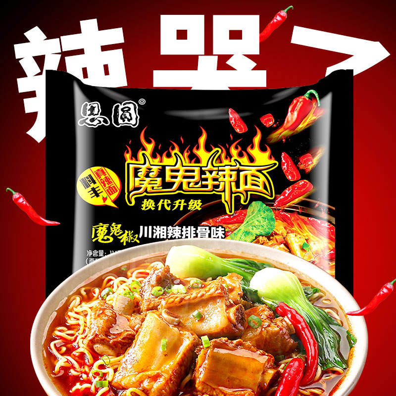 思圆魔鬼辣面方便面袋装 整箱批发夜宵速食川湘辣排骨炒牛肉味泡面