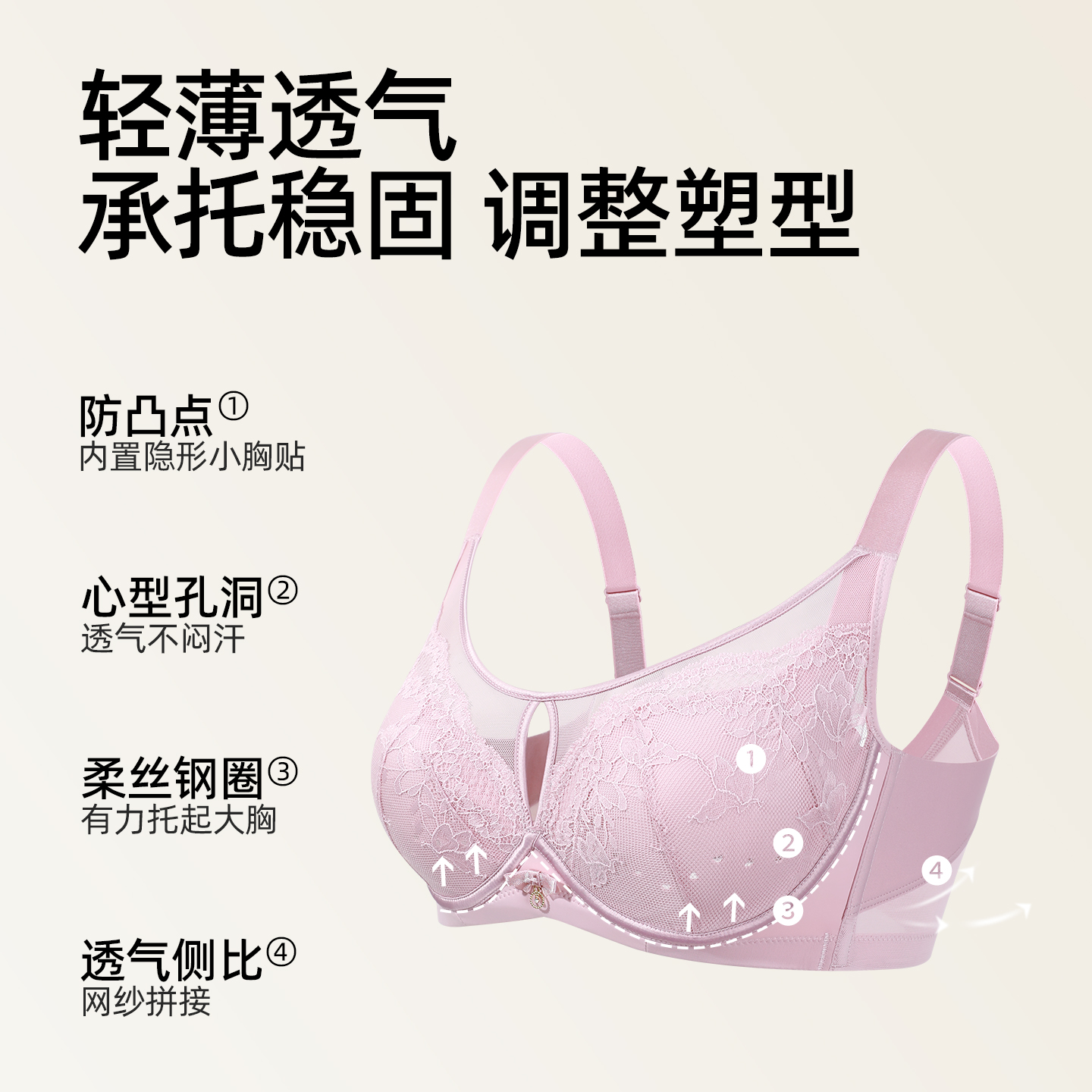 熳洁儿25秋大胸显小薄款 防下垂文胸聚拢调整型透气内衣女
