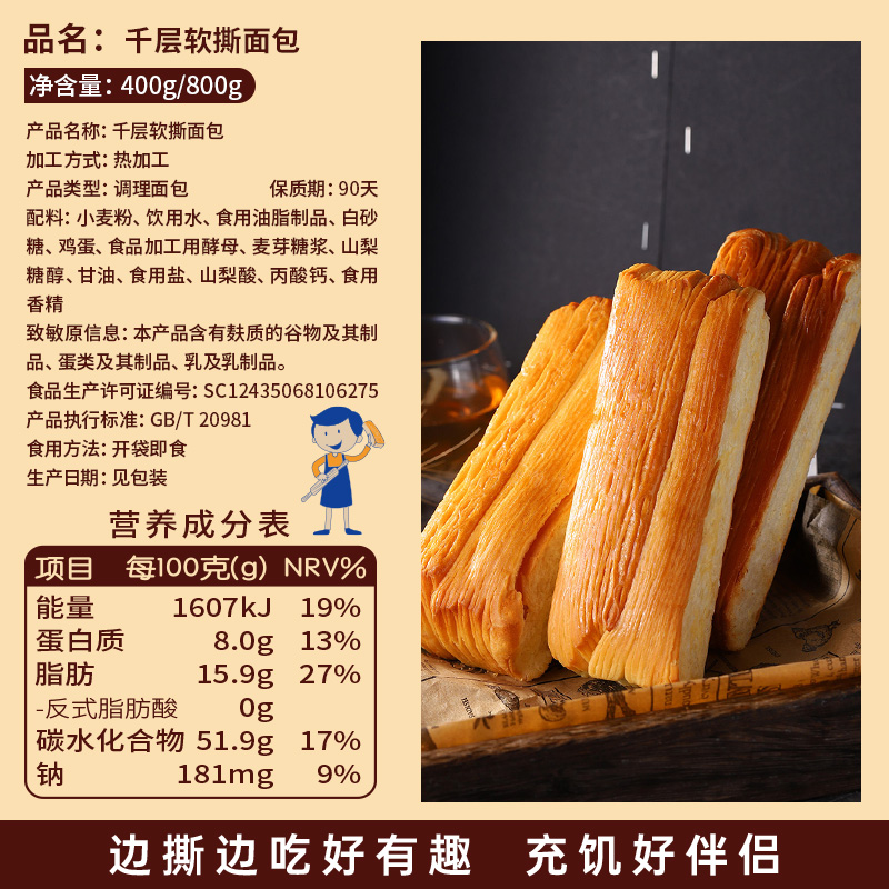 千层软手撕面包早餐整箱好吃 糕点心健康解馋小零食休闲食品小吃