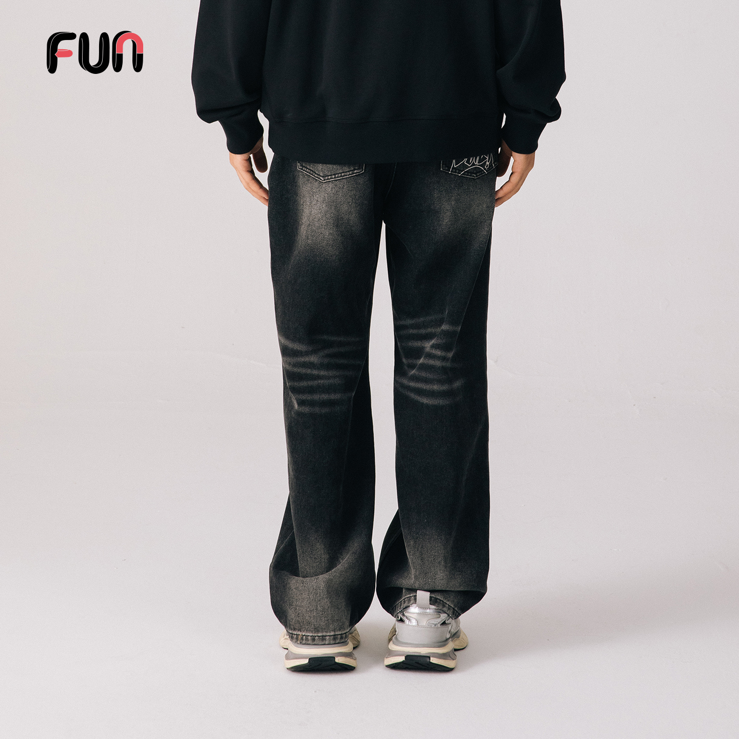 子男直筒裤 Fun2025秋冬季 复古做旧水洗牛仔裤 美式 线下商场同款