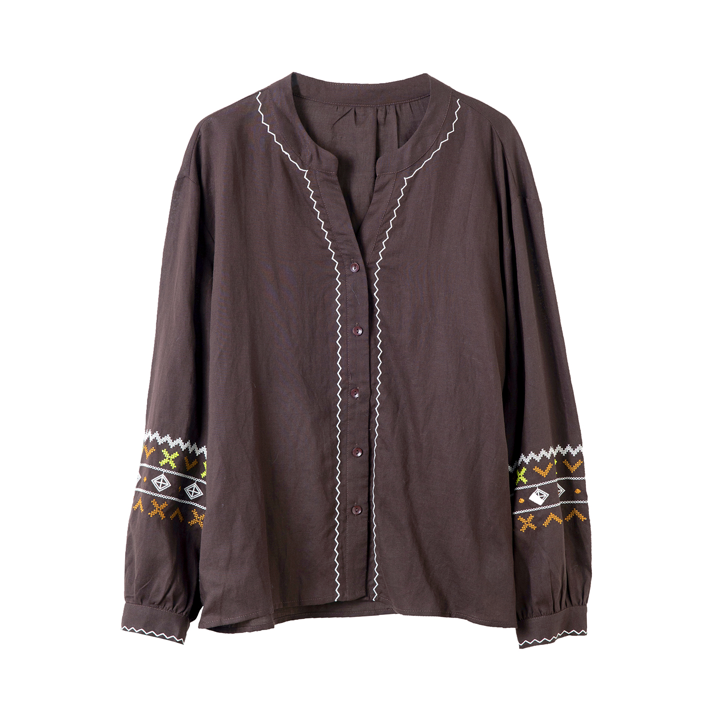 气质简约复古百搭休闲衬衣女 2025秋季 宝诗黎V领刺绣宽松长袖 衬衫