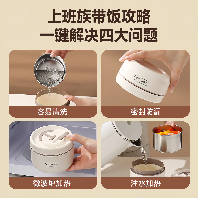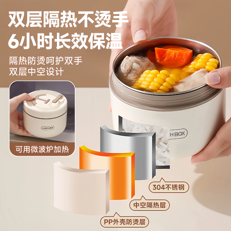 304不锈钢保温饭盒可微波炉加热专用上班族大容量带饭便当餐盒碗