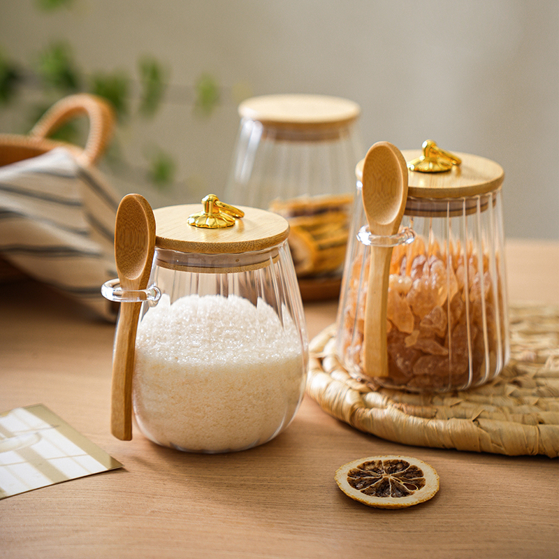 舍里高硼硅玻璃储物罐食品级透明蜂蜜干果茶叶储存瓶密封罐带勺