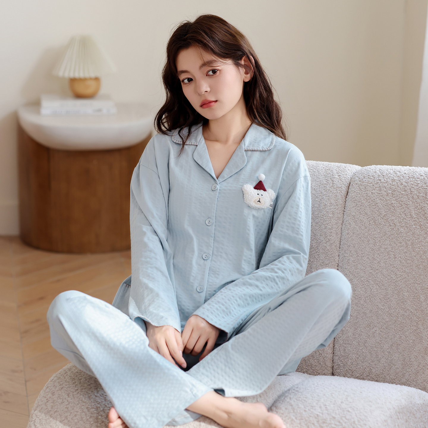卡通可爱外穿家居服2025年新款 芬腾大口袋睡衣女春秋纯棉长袖 长裤