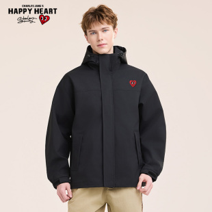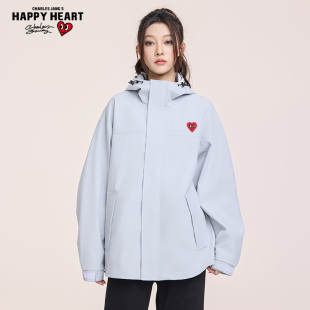 连帽户外登山防风情侣夹克 新款 查尔斯桃心美式 冲锋衣男外套春秋季
