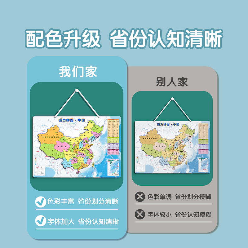 中国地图磁力拼图初中生专用世界行政区划地理儿童版 磁吸 2025新版