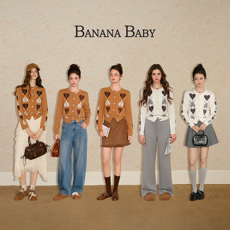复古学院风提花针织开衫 BABY2025年秋新款 BANANA 女 管乐同款