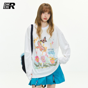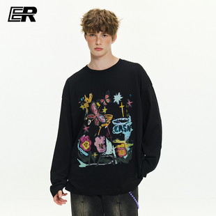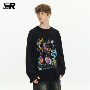 内搭上衣 oversiz休闲学生情侣装 ER国潮原创彩绘圆领长袖 t恤春秋季