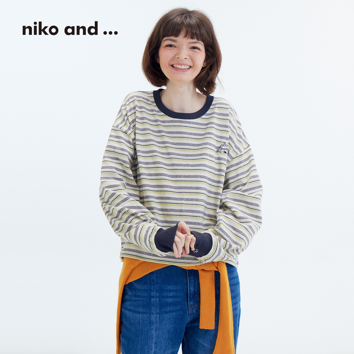 棉质条纹猫咪刺绣长袖 niko 新款 ...卫衣女2025秋季 上衣499075 and