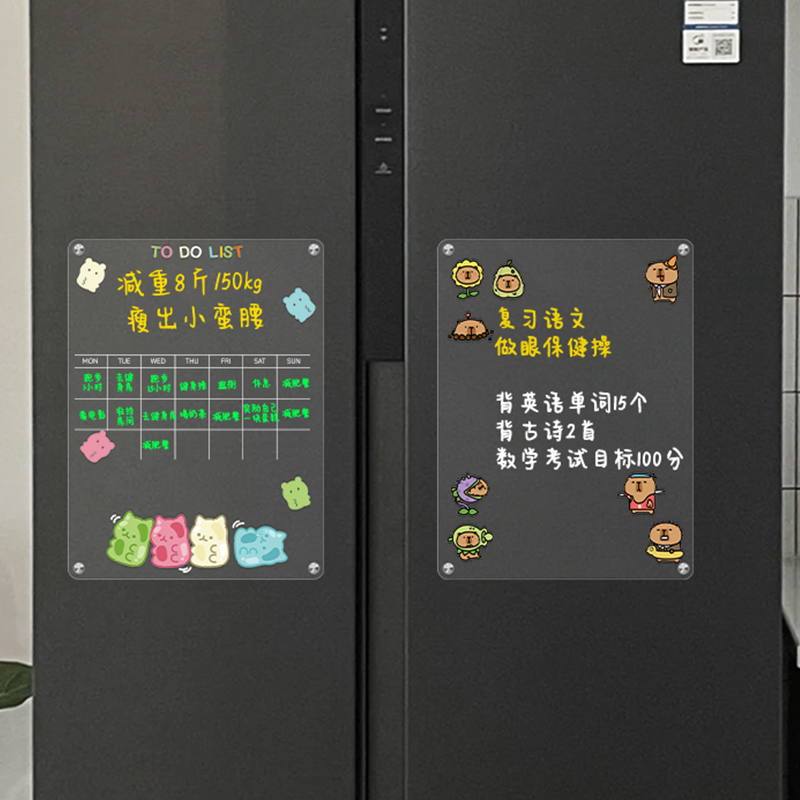 创意磁吸冰箱贴亚克力留言板卡通冰箱装 饰记事板计划表磁性贴透明
