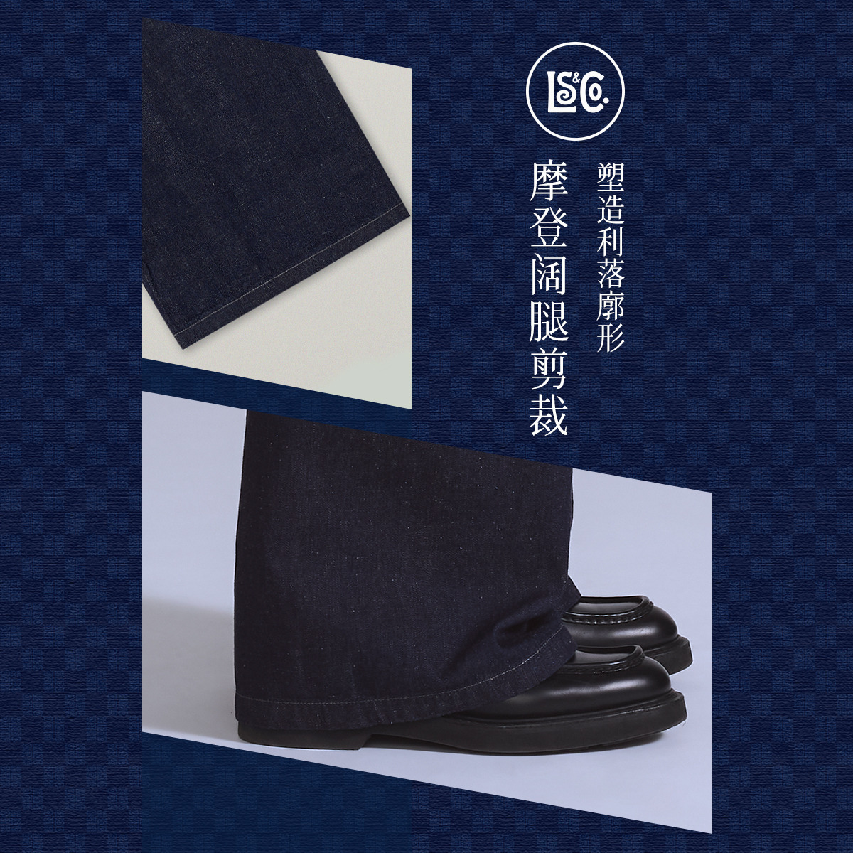 女翻边长裤 森马牛仔裤 2025秋季 新款 森柔牛仔 宽松阔腿裤 商场同款