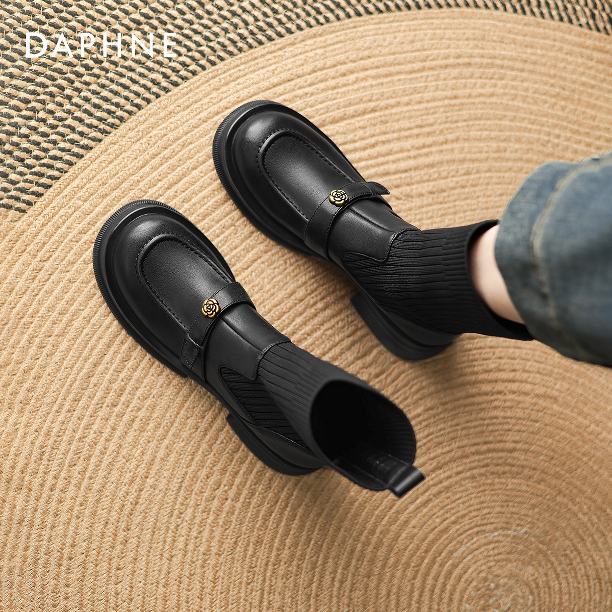 达芙妮山茶花瘦瘦靴短靴女款 弹力袜靴英伦风马丁靴子棕色 2025新款