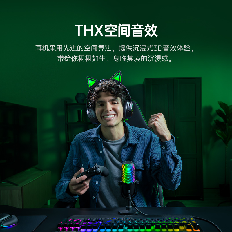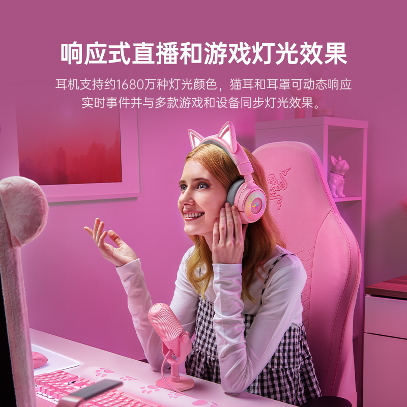 Razer雷蛇北海巨妖萌猫专业版 电脑USB无线三模游戏耳机 V3头戴式