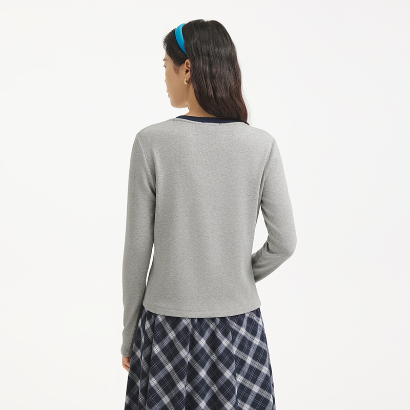 T内搭打底衫 热风女士圆领打底衫 撞色圆领长袖 新款 上衣2025年冬季