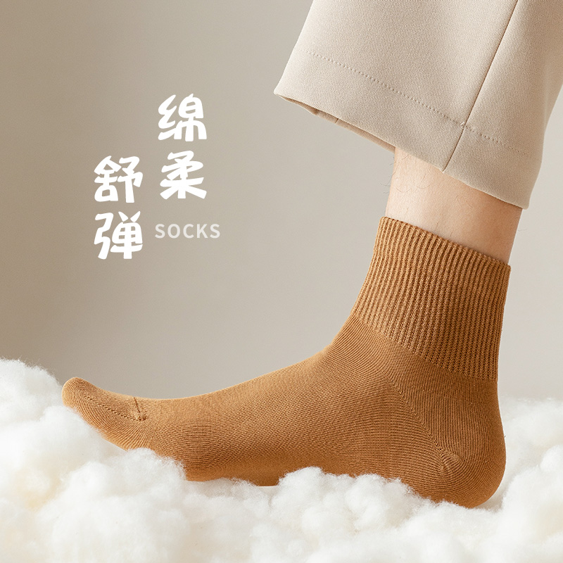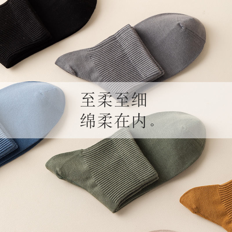 长袜 纯棉中筒袜抗菌防臭黑色运动全棉男士 猫人袜子男款 新疆棉薄款