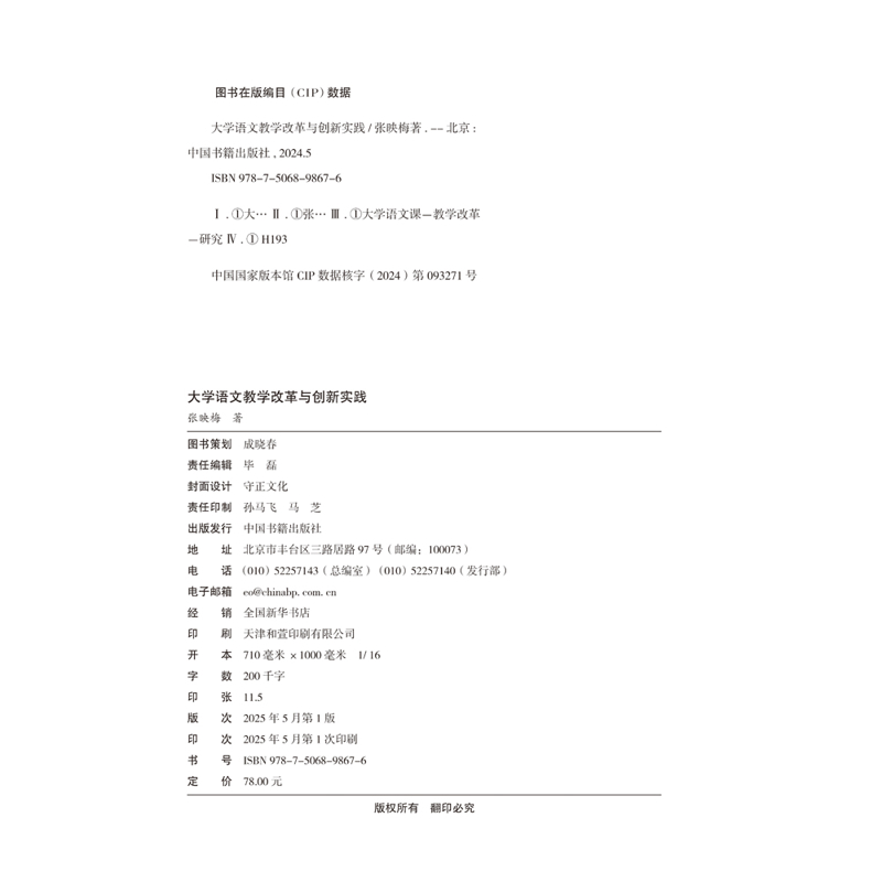 社新华书店正版 中书学研— 教育普及中国书籍出版 张映梅教育 大学语文教学改革与创新实践守正文化