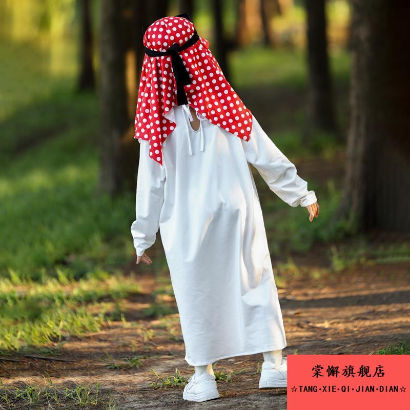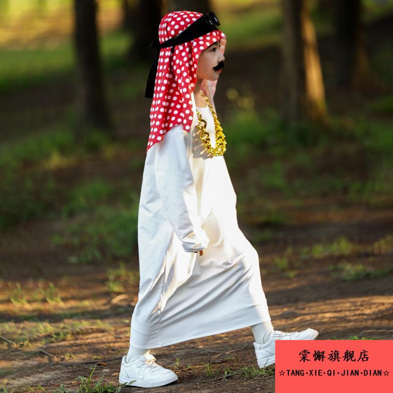 万圣节儿童阿拉伯长袍COS迪拜服装 阿富汗白色中东沙特头巾套装