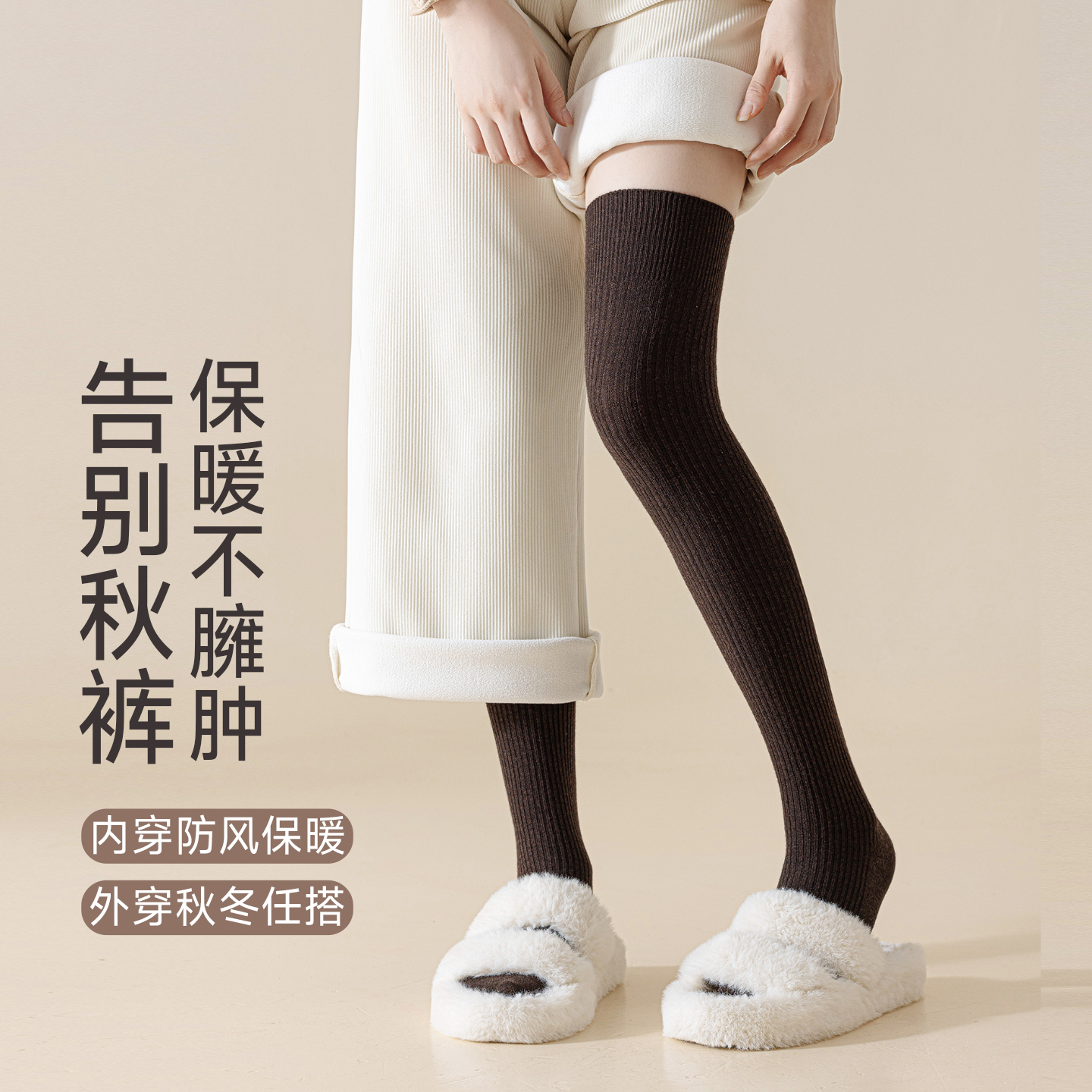 长筒靴袜子女搭配靴子小腿堆堆过膝袜春秋内搭白色大腿长筒袜羊毛