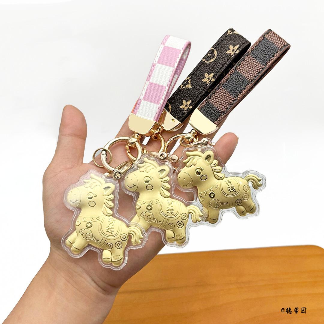 马上有钱小马挂件百搭老花花纹手机挂件马上有钱皮印花情侣包挂