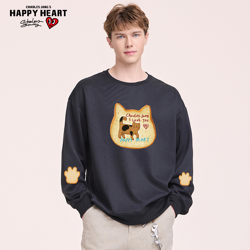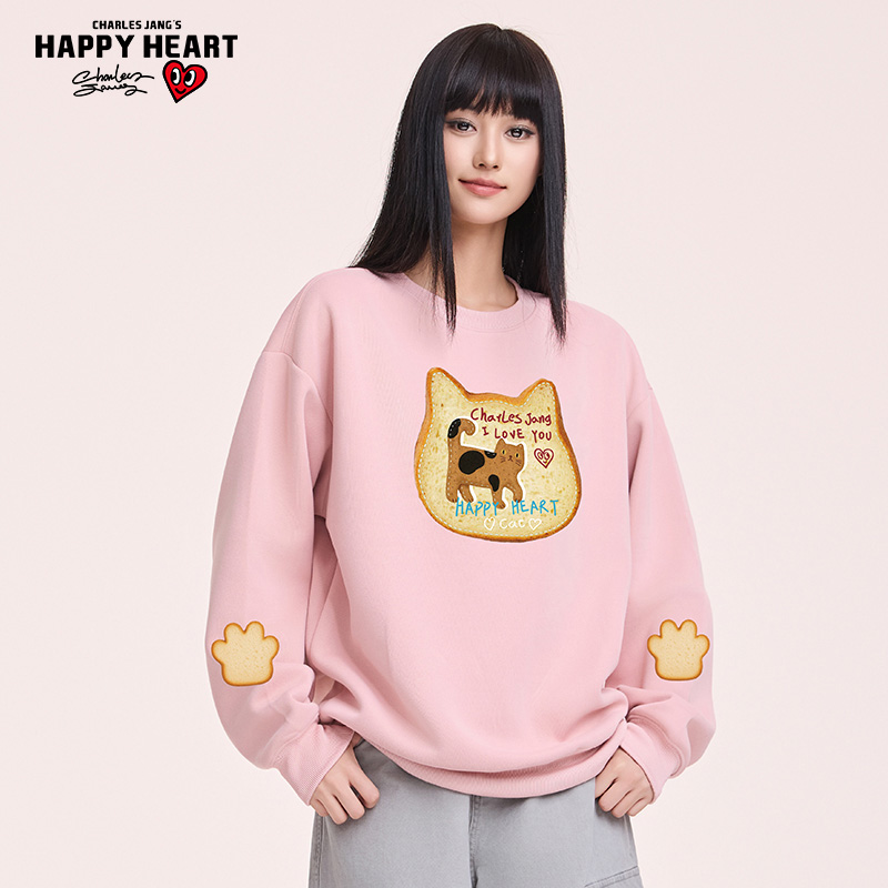 内搭上衣 情侣长袖 查尔斯桃心可爱面包猫咪印花圆领卫衣男女款 秋季