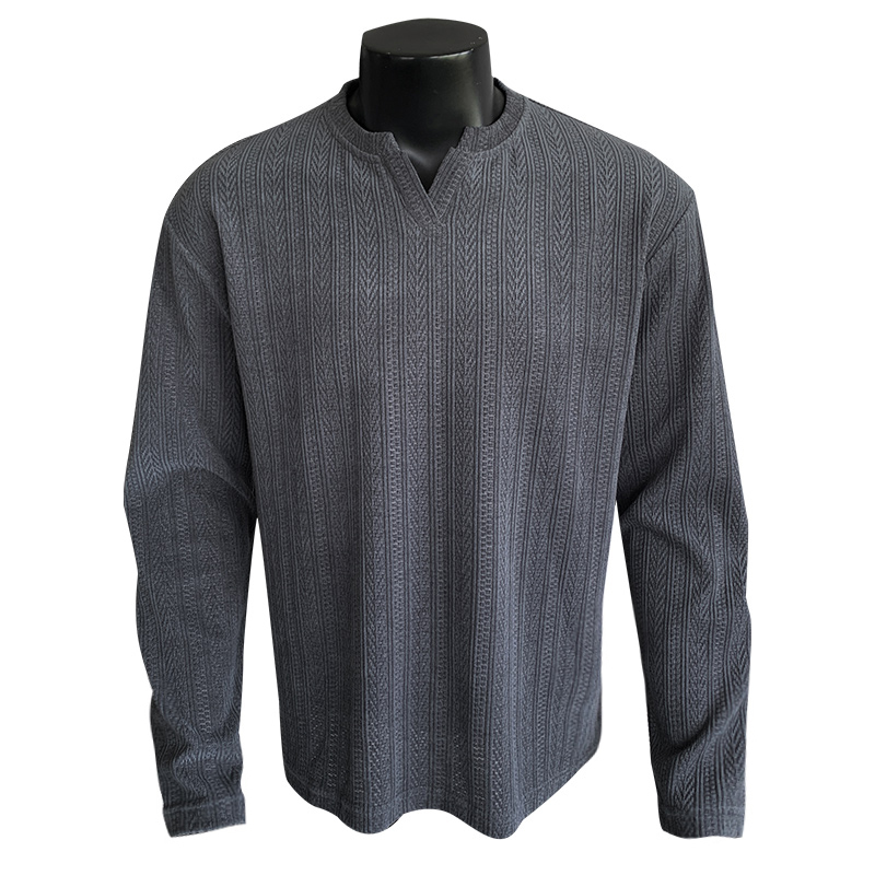 cleanfit正肩肌理感卫衣 t恤男秋季 美式 深灰色v领麦穗条纹提花长袖