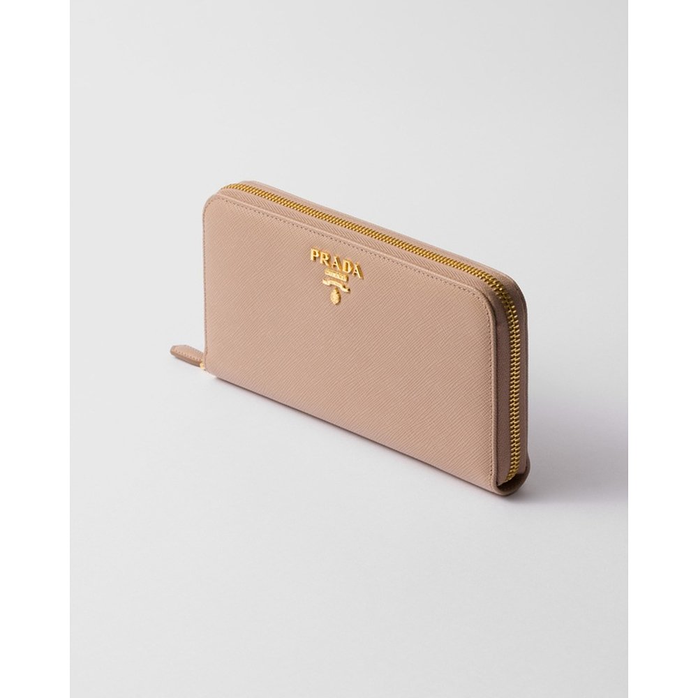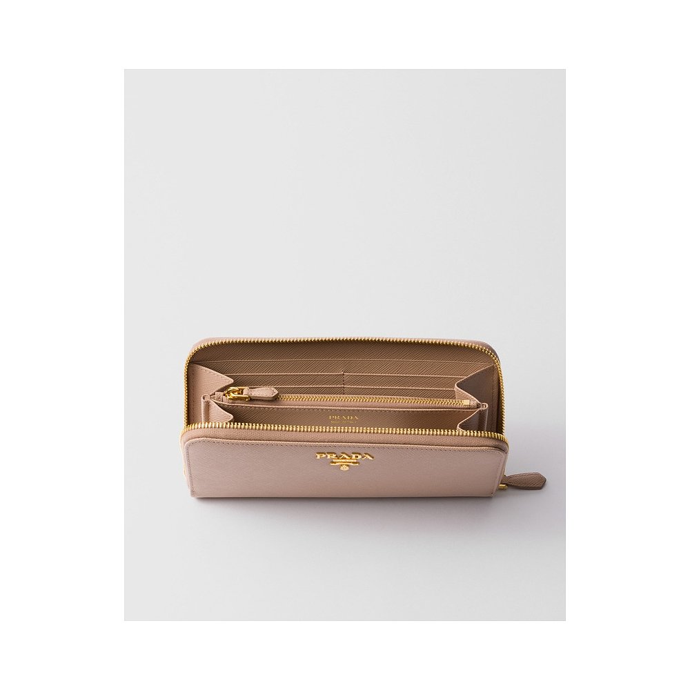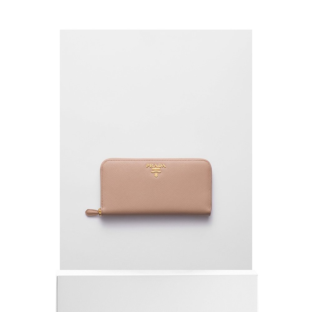 自营欧洲直邮Prada普拉达 钱包 女士浅柔粉小牛皮拉链闭合长款