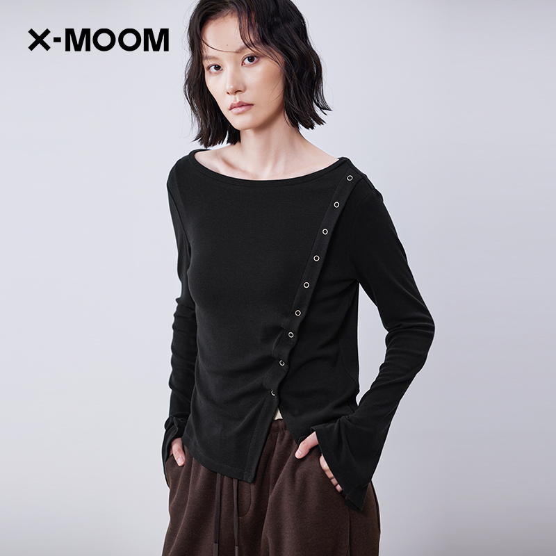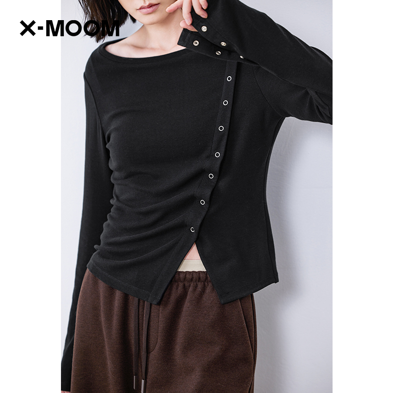 商场同款 设计感斜开衩针织打底套头衫 新款 女 MOOM2025冬季