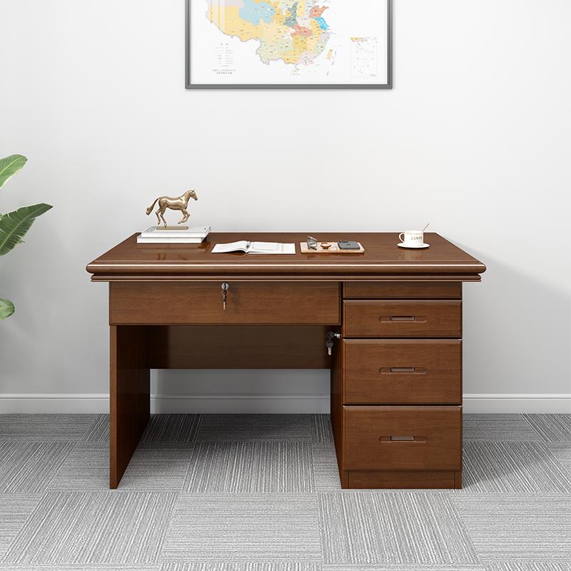 实木原木办公桌台式 电脑桌办公室职员单人带抽屉锁家用书桌写字台