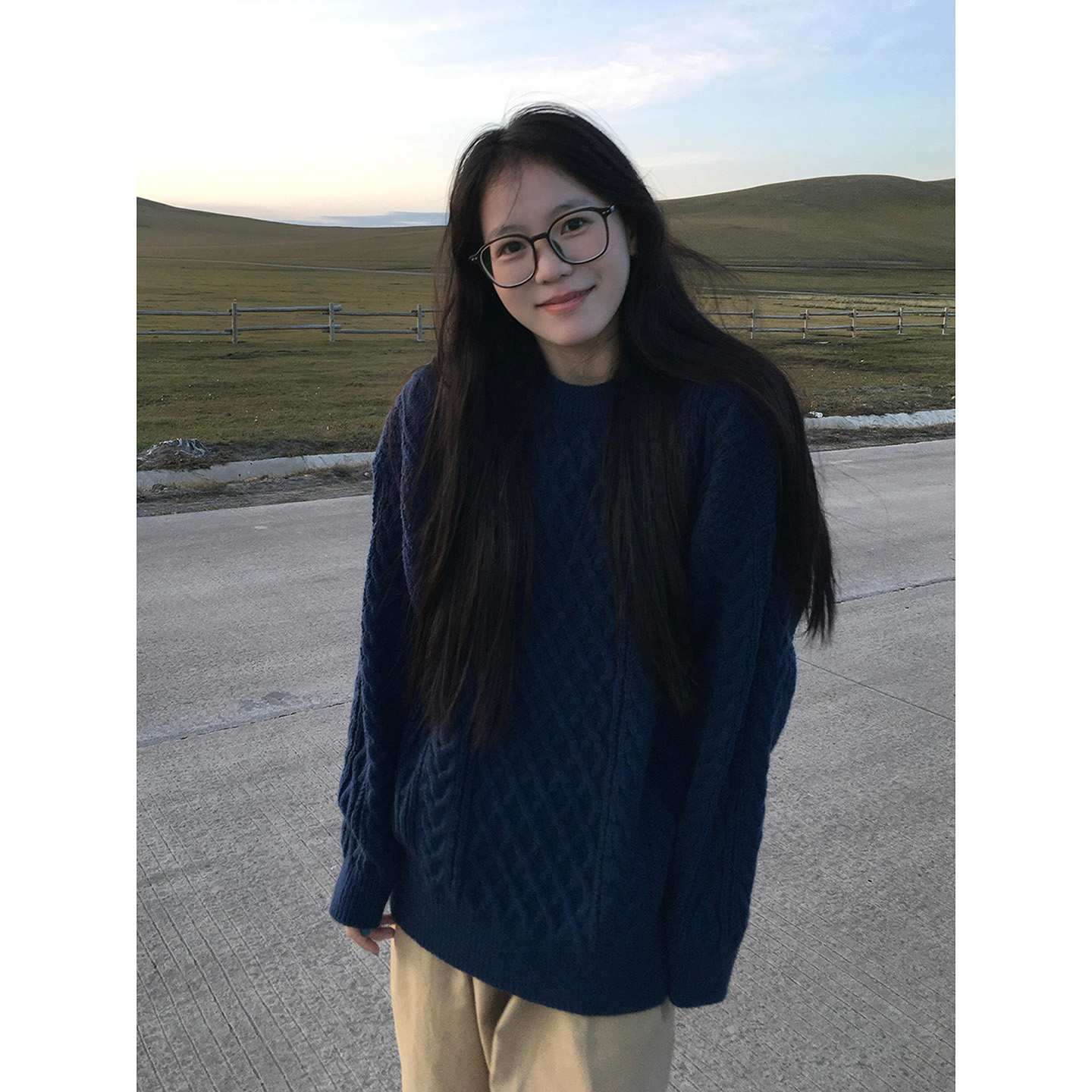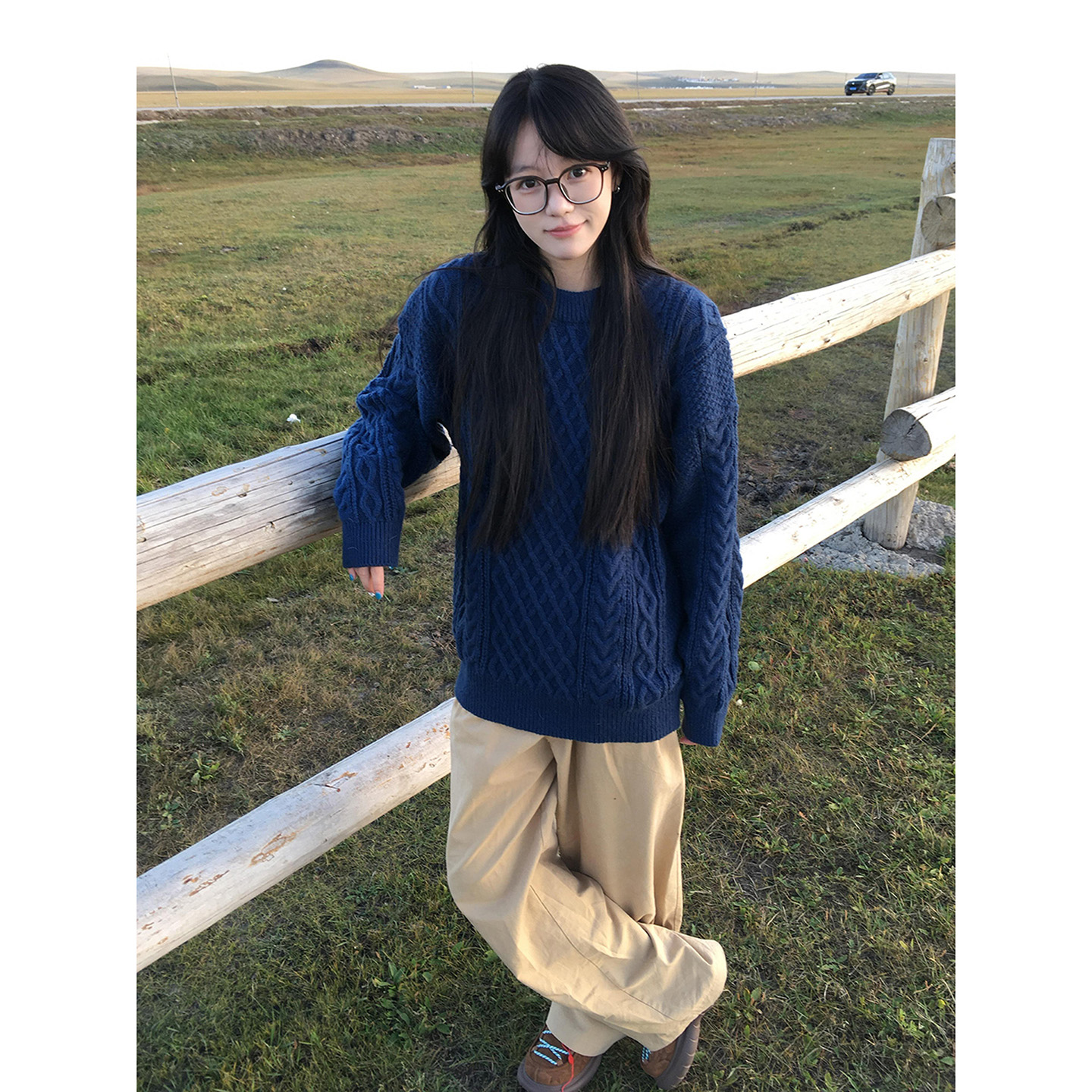 费尔岛复古连帽毛衣外套女秋冬慵懒风外穿软糯针织开衫 设计感上衣