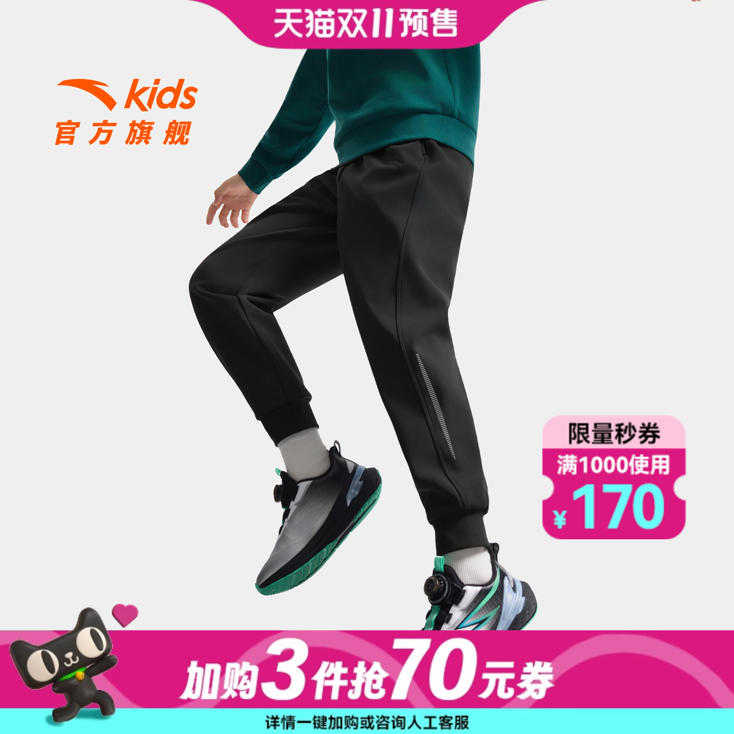 男士 李宁卫裤 秋季 宽松黑色裤 加绒运动裤 子直筒休闲裤 双11预售
