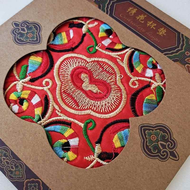 中式 杯垫碗垫隔热垫茶道绣花苗绣名族风出国送老外北京礼品工艺品