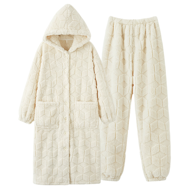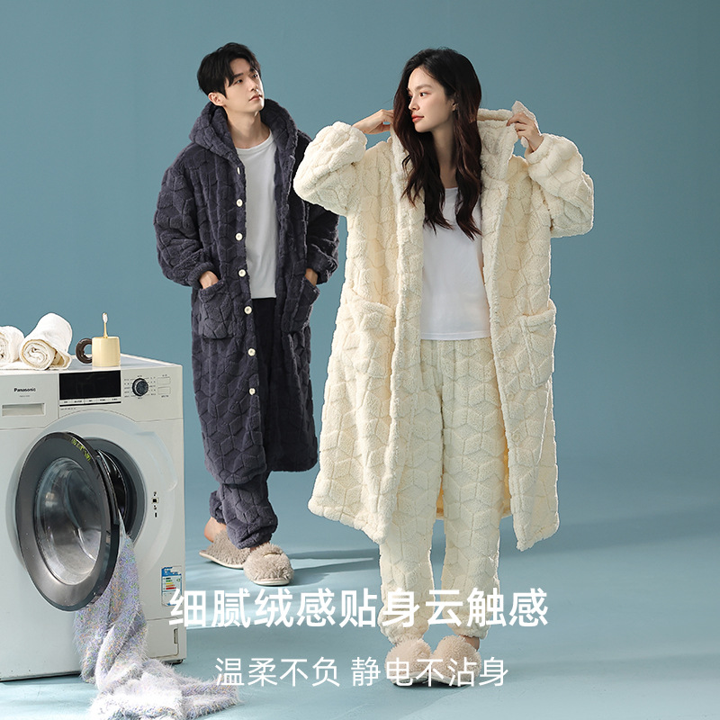 OLAIF贵妃绒情侣睡衣秋冬新款 可外穿 连帽加绒加厚保暖家居服套装