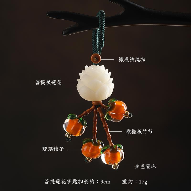 柿柿如意汽车钥匙扣挂件男女精致钥匙挂饰菩提莲花手机链吊坠礼品