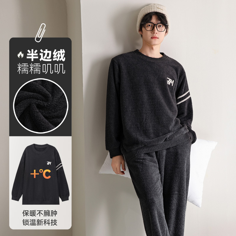 保暖加绒半边绒秋冬款 睡衣男款 家居服加厚珊瑚绒 男士 帕兰朵冬季