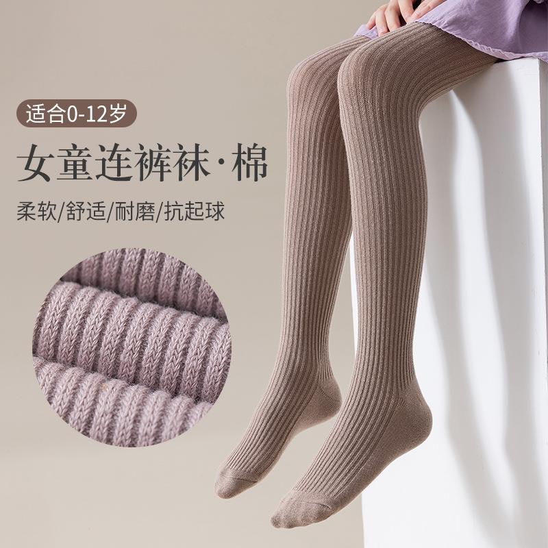 儿童连裤 袜子 袜A类春秋女童学院风西班牙细竖条精梳棉跨境打底裤