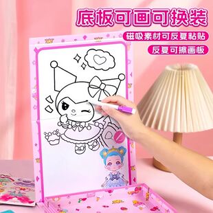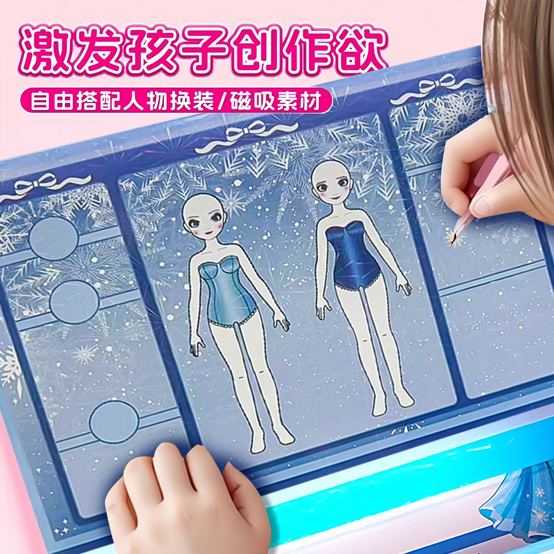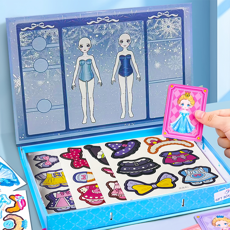 艾莎公主趣味魔法磁力盒儿童换装 女孩磁力安静书画板玩具 贴纸新款