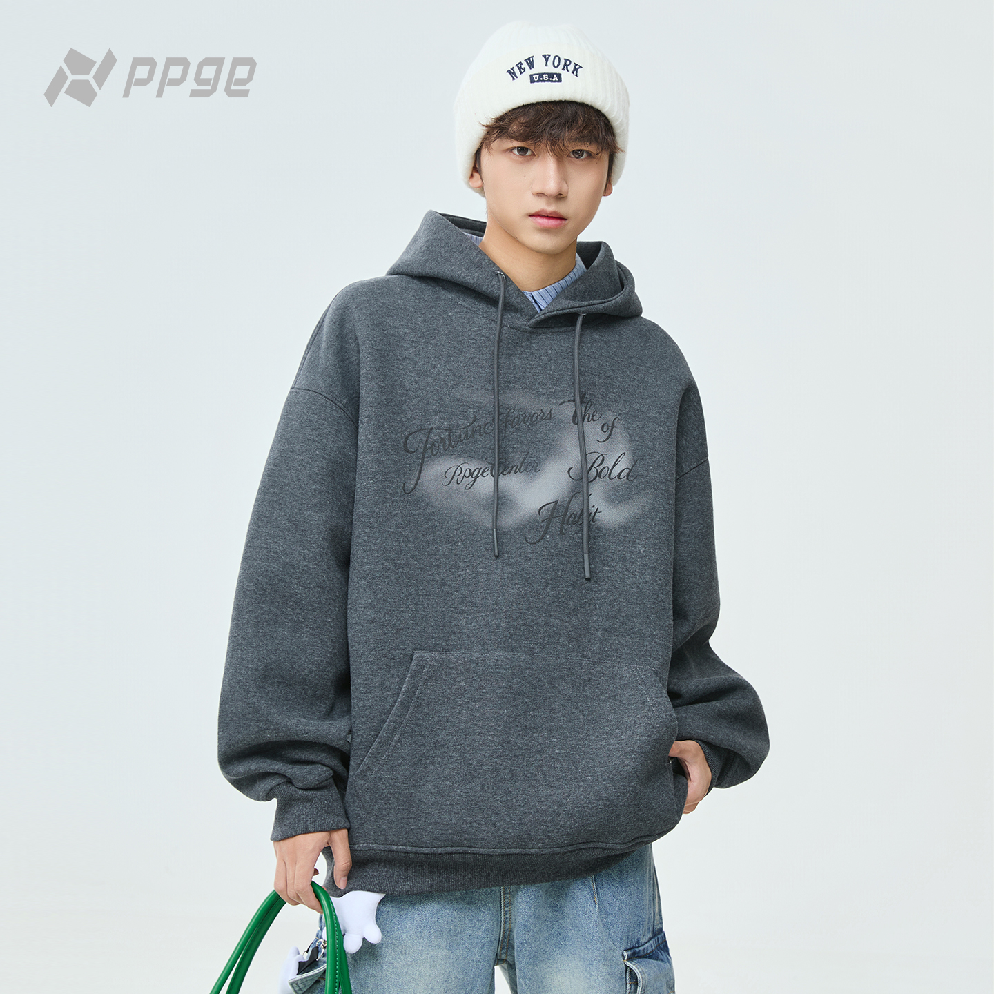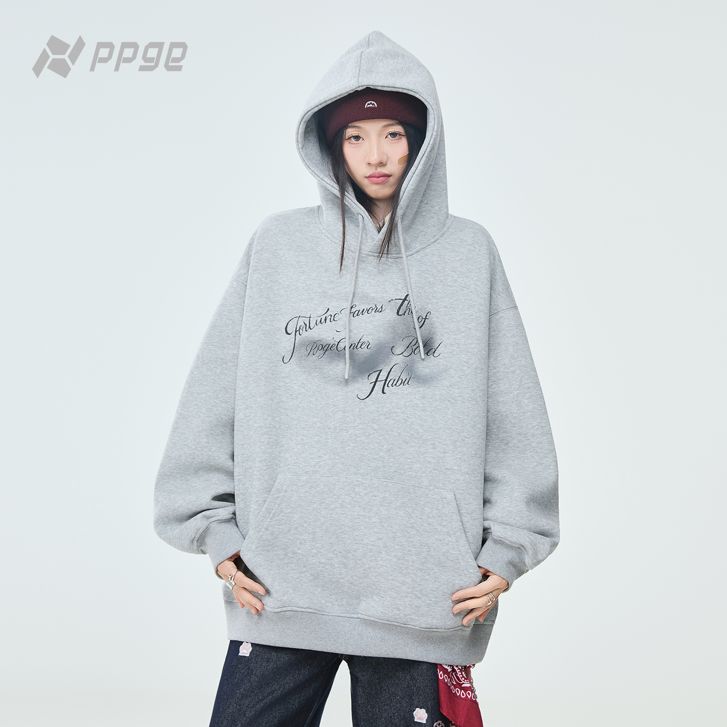 帽衫 小个子长袖 外套 宽松早秋巨好看 ppge灰色连帽卫衣女2025新款